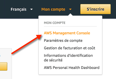 Sélectionnez "Mon compte", puis cliquez sur "AWS Management Console" :